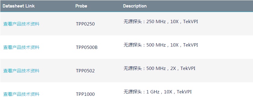 作為測量信號路徑中的關(guān)鍵元件,探頭不容忽視。在購買 MDO3000 時,您將免費獲得業(yè)內(nèi)最佳的探頭。由于擁有業(yè)內(nèi)最佳的負(fù)載 (3.9 pF) 和可匹配您示波器的高帶寬,TPP 系列探頭將是您日常使用的隨身探頭。
