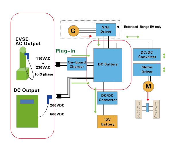 交流充電樁輸出交流電,需要通過車載充電機進行AC/DC轉(zhuǎn)換後,才能對動力電池進行充電。