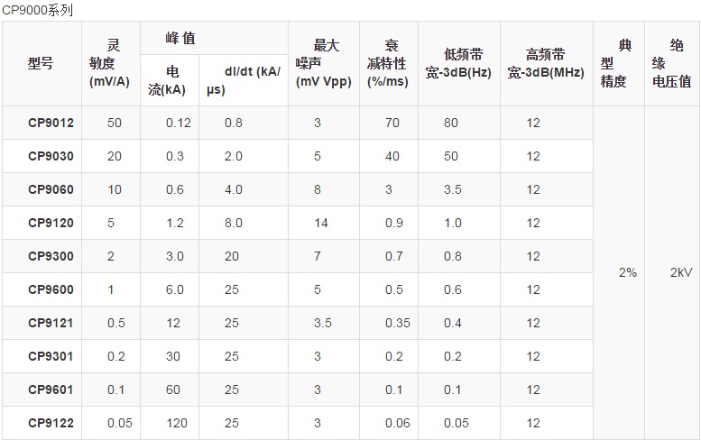 CP9000(S/L)系列柔性電流探頭是僅測(cè)試AC電流信號(hào)的探頭,具有高帶寬,高精度(典型值2%)等特點(diǎn)??梢詫?shí)現(xiàn)寬廣的電流測(cè)量范圍,頻率可從幾Hz到數(shù)十MHz,電流范圍從mA級(jí)別到數(shù)kA級(jí)別,大大解決了電流測(cè)試的難題。其主要特點(diǎn)包括:線(xiàn)圈輕巧柔軟且可以自由插拔,可以探測(cè)到許多硬制探頭無(wú)法達(dá)到的地方,輕而易舉的實(shí)現(xiàn)與被測(cè)對(duì)象連接;插入損耗幾乎為零,僅為幾個(gè)皮亨,對(duì)被測(cè)對(duì)象近乎為零的干擾;標(biāo)準(zhǔn)的BNC輸出接口,很方便實(shí)現(xiàn)與示波器,數(shù)據(jù)采集器,數(shù)字電壓表等連接,觀(guān)測(cè)電流波形;USB供電接口設(shè)計(jì),使用更加靈活方便;聲光過(guò)流報(bào)警功能,更具人性化設(shè)計(jì);探頭環(huán)和連接線(xiàn)長(zhǎng)度可以根據(jù)客戶(hù)要求定制,滿(mǎn)足特殊場(chǎng)合測(cè)試要求。