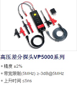 VP5000A系列高壓差分探頭是針對高壓差分信號的測量,滿足浮地測量的需求。其帶寬最高達到120MHz,滿足了大部分測試系統(tǒng)的需要;豐富的量程可供選擇,其差動測量電壓范圍滿足大部分測試電路的要求;用戶可進入測試模式,調整偏置電壓,探頭長期使用后若出現失調現象,用戶可進入該模式,調整偏置,實現歸零;電子輕觸式按鍵,使得使用壽命更長;具有5MHz帶寬限制功能選擇,5MHz頻率帶寬滿足大部分開關電源中FETs的開關頻率的測量,并可以濾除更高頻率的噪聲和干擾;帶有聲光報警功能,且可手動關閉聲音報警功能,更具有人性化設計;USB供電接口,使用更加方便靈活;探頭配備標準的BNC輸出接口,可與任何廠家的示波器配合使用(要求示波器的輸入阻抗設置為1MΩ;當選擇50Ω時,衰減倍數會多衰減一倍),測量被測電路波形;自動保存功能,防止掉電后用戶重復操作。探頭具備良好的共模噪聲抑制能力,輸入端具有較高的輸入阻抗和較低電容,可以準確高速地測量差分電壓信號。可廣泛用于開關電源﹑變頻器﹑電子鎮(zhèn)流器﹑變頻家電和其它電氣功率裝置等的研發(fā)﹑調試或檢修工作中。