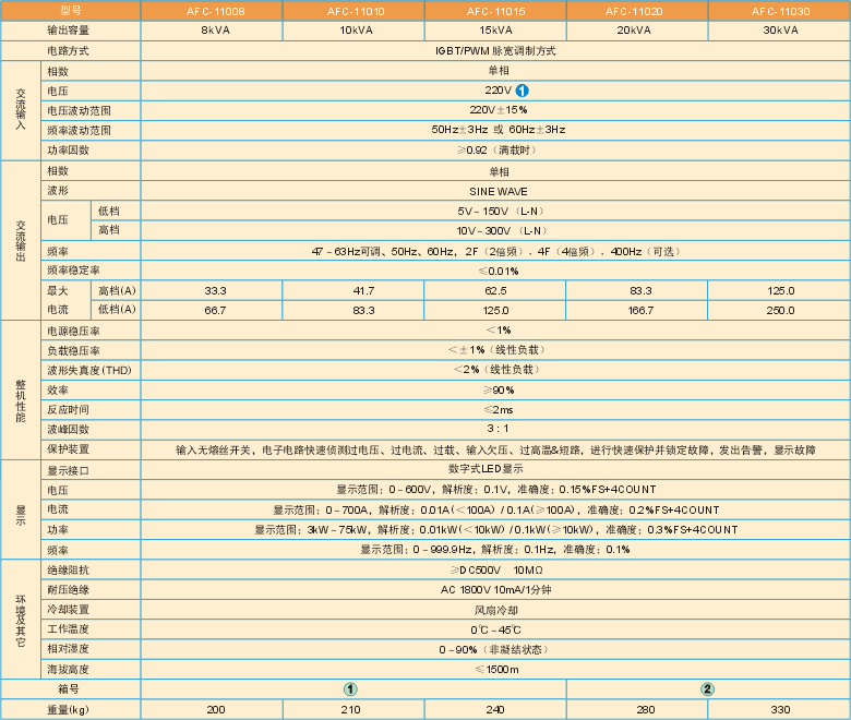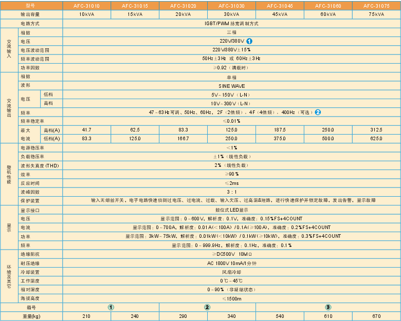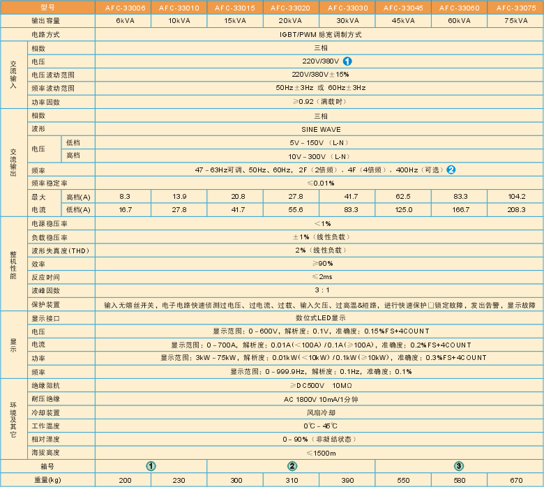 表1:AFC系列變頻電源產(chǎn)品輸入電壓一覽表